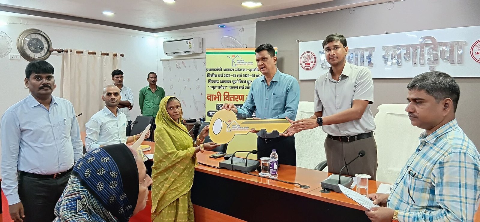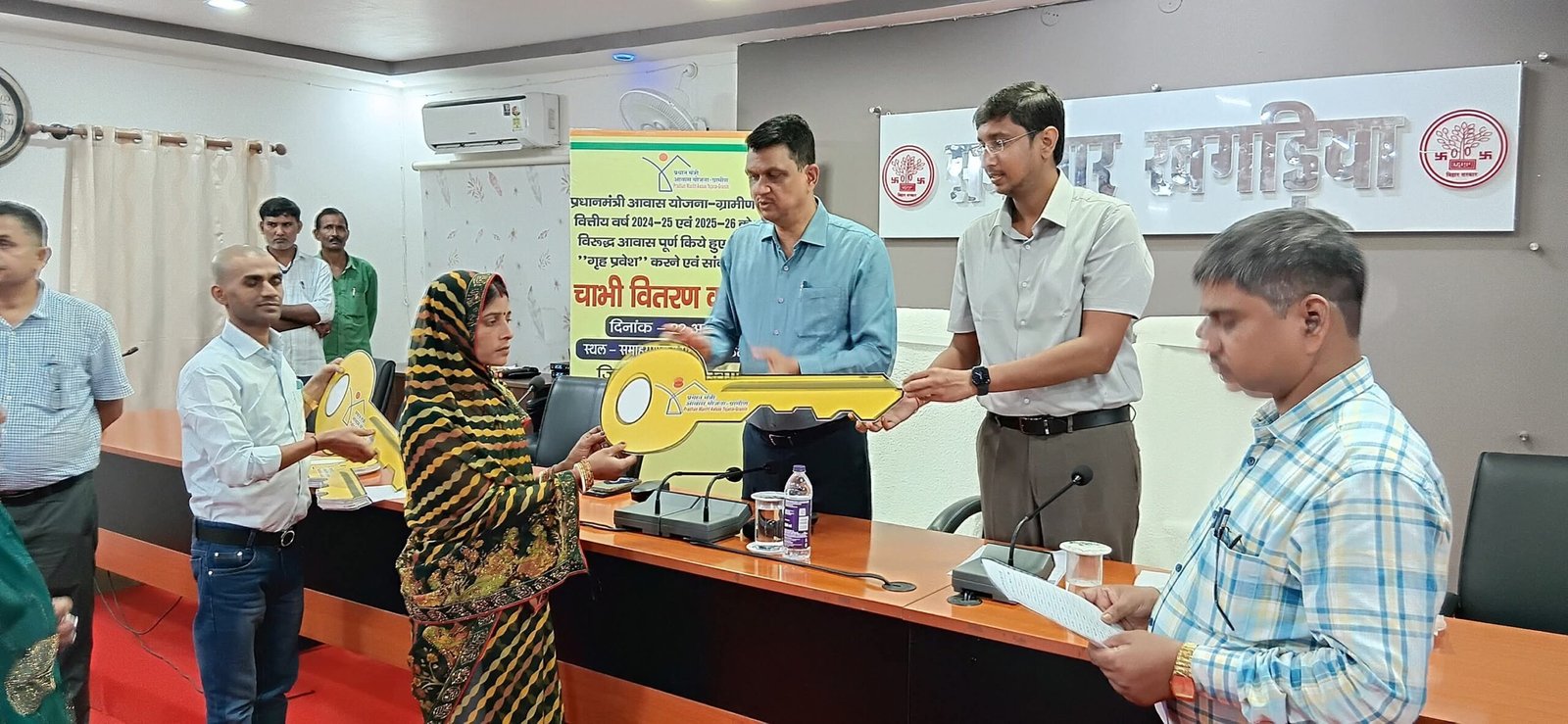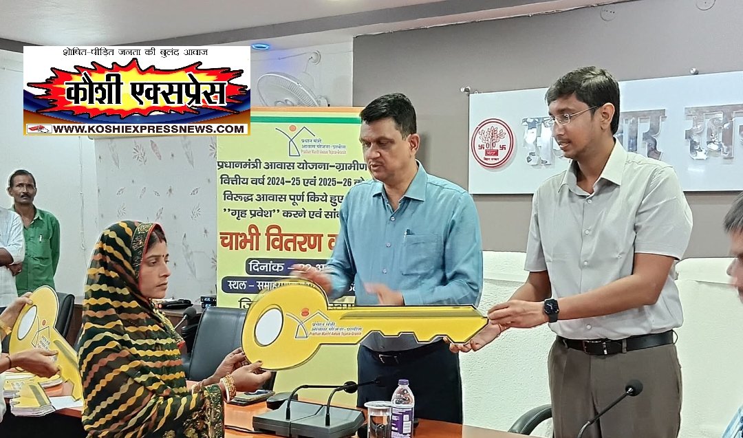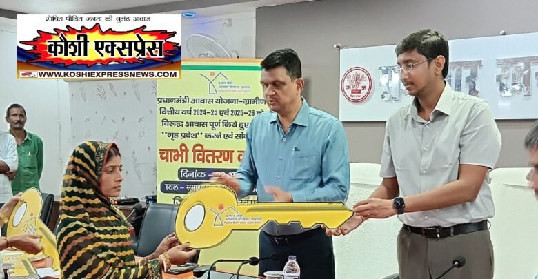 खगड़िया/ कौशी एक्सप्रेस/ 22 अगस्त 2025 को माननीय प्रधानमंत्री द्वारा गया में आयोजित कार्यक्रम के दौरान प्रधानमंत्री आवास योजना-ग्रामीण के लाभुकों को उनके आवास की सांकेतिक चाबी प्रदान की गई। इसी क्रम में खगड़िया जिले में भी कार्यक्रम आयोजित कर लाभुकों को आवास का लाभ प्रदान किया गया। जिलाधिकारी खगड़िया नवीन कुमार (IAS) की अध्यक्षता में समाहरणालय सभाकक्ष में आयोजित कार्यक्रम के दौरान जिले के *कुल 20 लाभुकों को सांकेतिक चाबी प्रदान की गई।