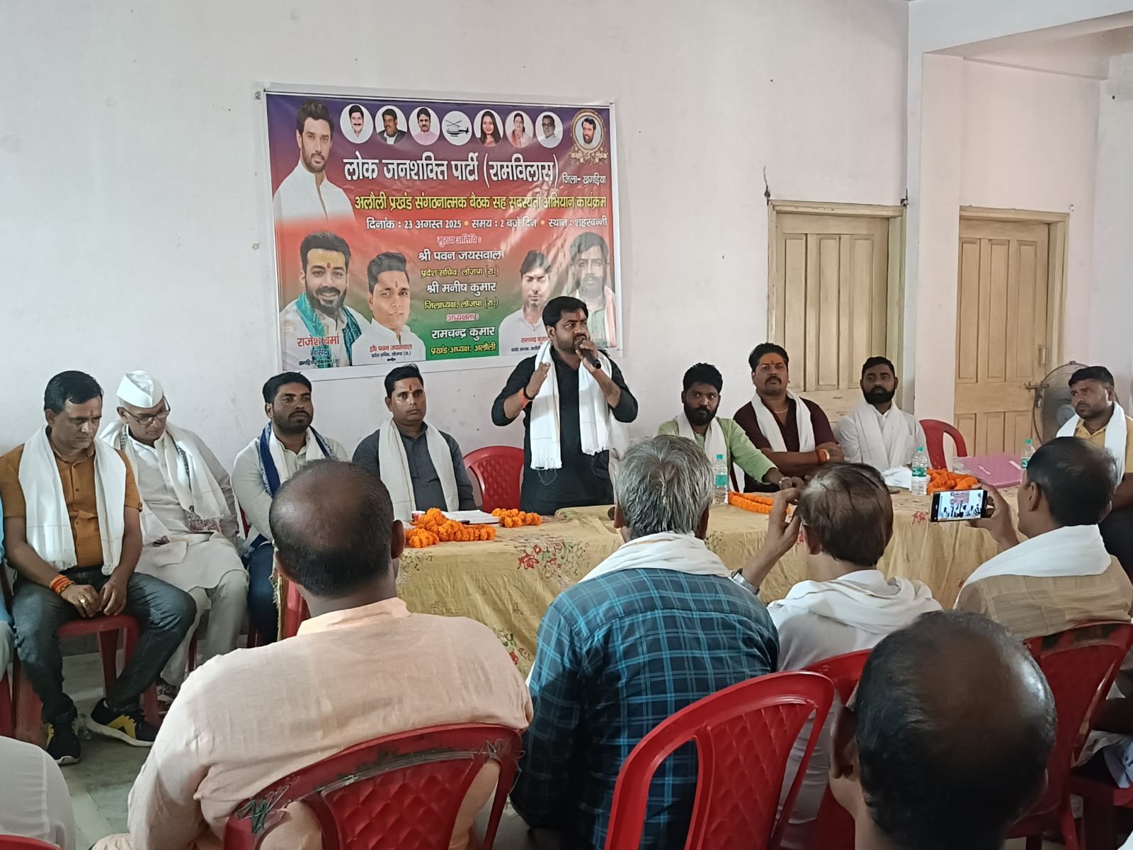 जिलाध्यक्ष मनीष सिंह ने अलौली की बैठक में लोजपा (R) कार्यकर्ताओं को किया संबोधित, संगठन को मजबूत बनाने का लिया संकल्प