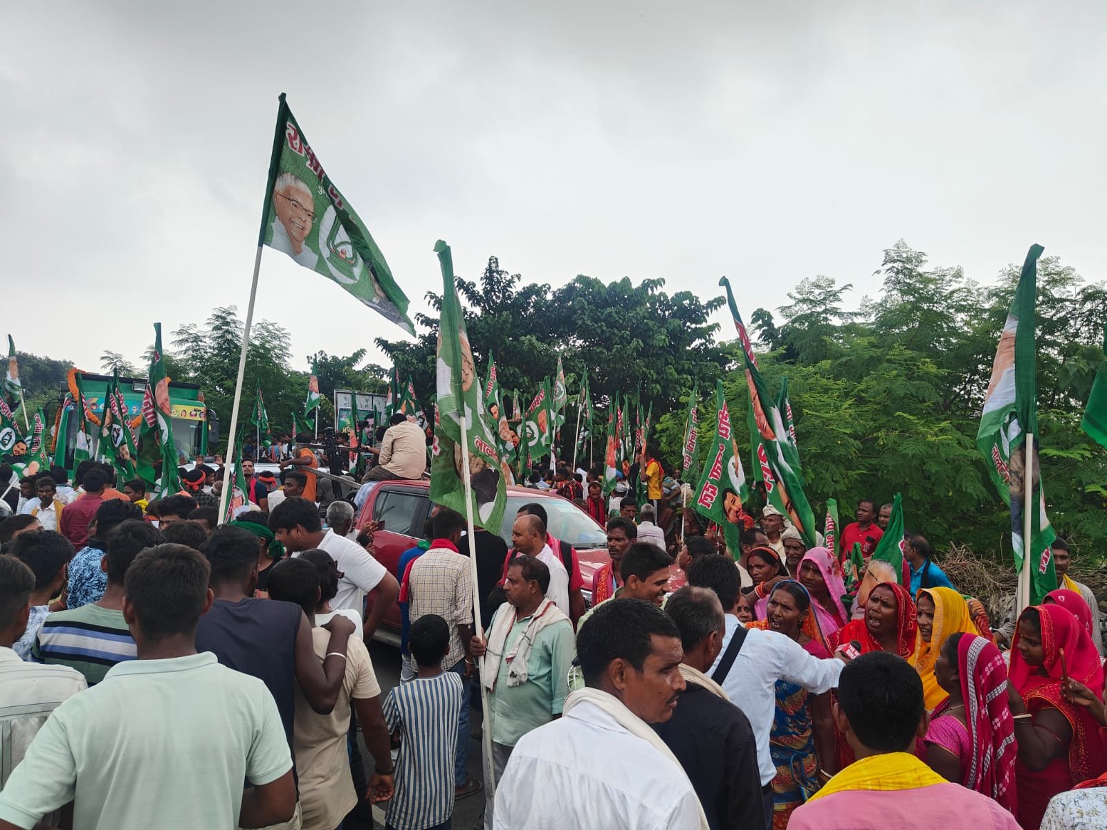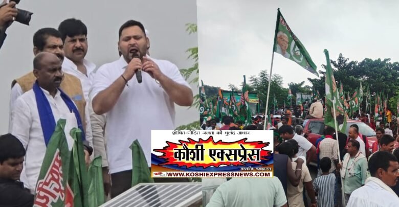 तेजस्वी ने मुख्यमंत्री को “डुप्लीकेट” बताते हुए कहा कि जनता को अब तय करना है कि ओरिजनल मुख्यमंत्री चाहिए या नकली। उन्होंने शराबबंदी कानून पर भी सवाल उठाते हुए कहा कि गरीबों को जेल भेजा जा रहा है जबकि अमीरों पर कार्रवाई नहीं होती। उन्होंने कहा कि हमारी सरकार बनेगी तो यह दवाई, सुनवाई और करवाई वाली सरकार होगी। डिग्रीधारी हर युवा को नौकरी मिलेगी।” इस मौके पर राज्यसभा सांसद संजय यादव, पूर्व मंत्री कुमार सर्वजीत, शिवचंद्र राम, एमएलसी मो. कारी सोएब, राष्ट्रीय उपाध्यक्ष चौधरी महबूब अली कैशर, प्रदेश उपाध्यक्ष सुबोध यादव, जिला मीडिया प्रभारी रणवीर कुमार सहित सैकड़ों राजद नेता मौजूद थे।