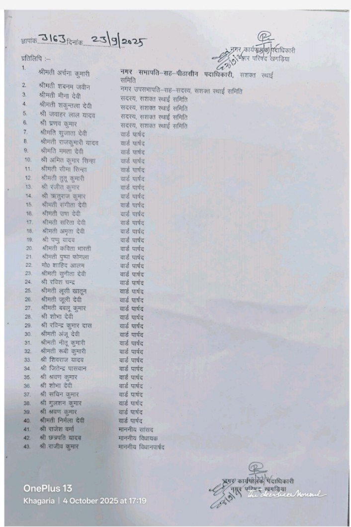 बैठक: नप सभापति अर्चना कुमारी की पहल से खगड़िया में विकास की नई इबारत…शहर को मिलेगा नया टाउन हॉल और आधुनिक सुविधाएं…
