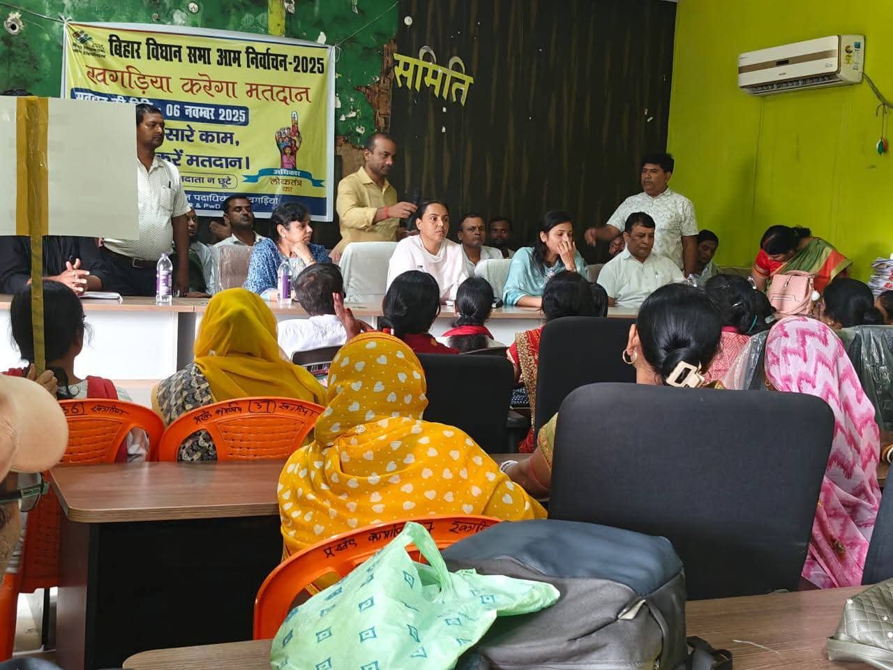 खगड़िया/ कौशी एक्सप्रेस/आज खगड़िया सदर प्रखंड कार्यालय में SVEEP कोषांग के तत्वावधान में एक महत्वपूर्ण बैठक का आयोजन किया गया। बैठक की अध्यक्षता वरीय नोडल पदाधिकारी, SVEEP कोषांग सह उप समाहर्ता श्रीमती आरती ने की तथा संचालन नोडल अधिकारी, SVEEP कोषांग द्वारा किया गया। बैठक में प्रभारी डीपीआरओ कौशिकी, प्रखंड विकास पदाधिकारी (BDO) खगड़िया सदर, स्वास्थ्य विभाग की आशा कार्यकर्ता, जीविका दीदी, सभी बी.एल.ओ. एवं आंगनवाड़ी सेविकाएं उपस्थित रहीं।