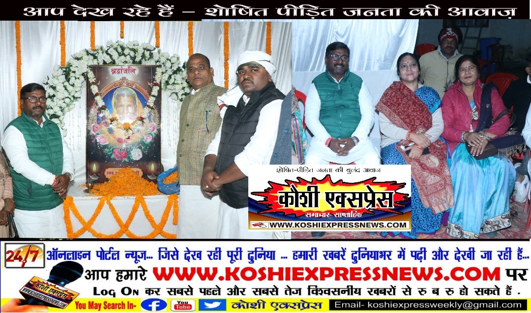 खगड़िया/ कौशी एक्सप्रेस/ बलुआही (खगड़िया)। नगर परिषद क्षेत्र के बलुआही में शनिवार (6.12.2025) को भाजपा नेता विक्रम कुमार यादव की दादी माँ के सम्मान में आयोजित श्रद्धांजलि कार्यक्रम भावभीने वातावरण में सम्पन्न हुआ। कार्यक्रम में बड़ी संख्या में जनप्रतिनिधि, सामाजिक कार्यकर्ता, ग्रामीण और शुभचिंतक मौजूद रहे। श्रद्धांजलि सभा में उपस्थित लोगों ने दिवंगत दादी मां के तैलचित्र पर माल्यार्पण एवं पुष्प अर्पित कर नमन किया। इस दौरान वक्ताओं ने कहा कि दिवंगत माताजी का स्नेह, सरलता और जीवन मूल्यों ने न केवल परिवार को, बल्कि समाज को भी हमेशा मार्गदर्शन दिया है।