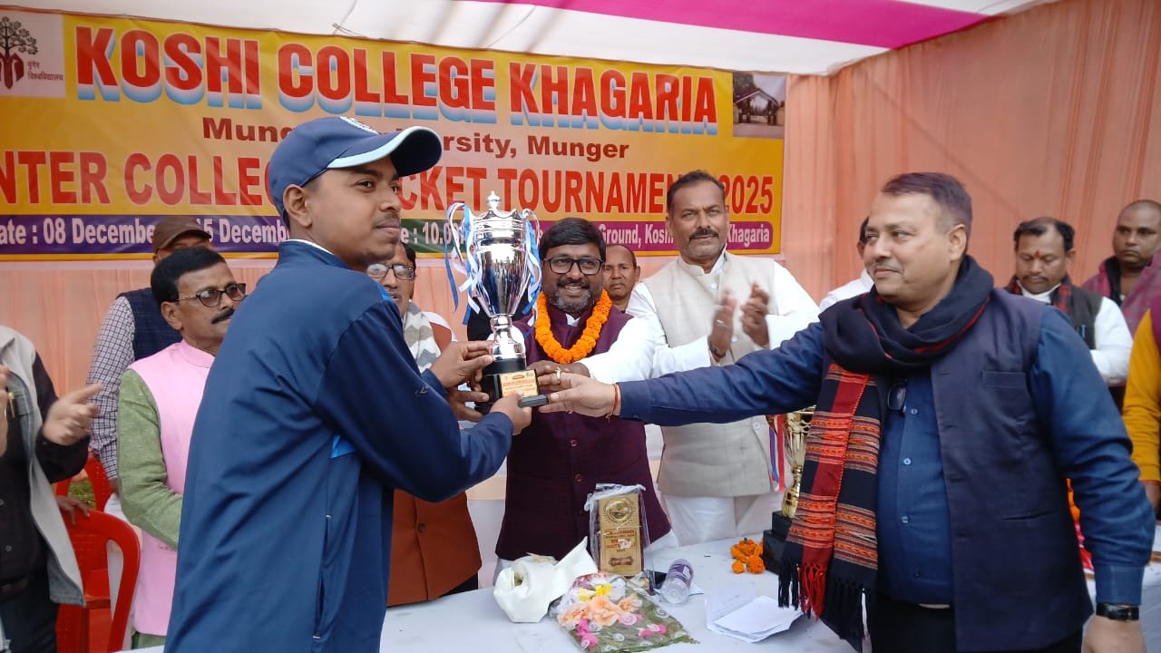 मौके पर मुख्य अतिथि सदर विधायक बबलू कुमार मंडल ने विजेता टीम के कप्तान सौरभ सिंह चौहान को ट्रॉफी प्रदान की। प्लेयर ऑफ द मैच का पुरस्कार विजेता टीम के मोहित कुमार को दिया गया।प्लेयर ऑफ द सीरीज का पुरस्कार कोशी कॉलेज के ऑलराउंडर प्रिंस कुमार को प्रदान किया गया।