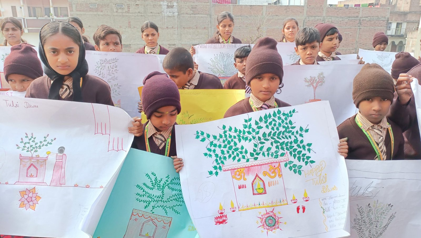 न्यू एम्बिशन पब्लिक स्कूल में धूमधाम से मनाया गया तुलसी पूजन दिवस…बच्चों में चित्रकला प्रतियोगिता का आयोजन
