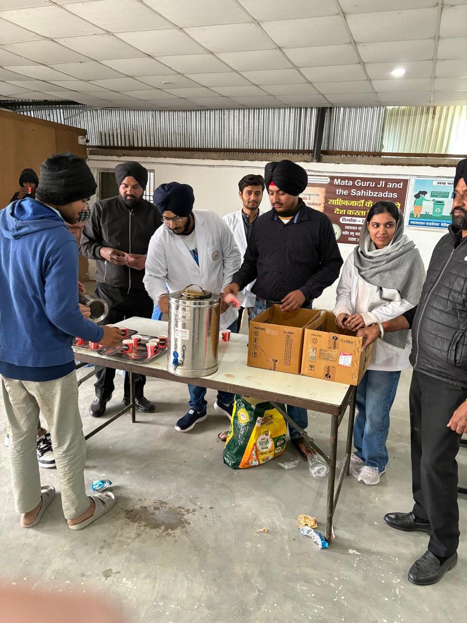 इस अवसर पर मेडिकल कॉलेज में अध्ययनरत सिख समुदाय के एमबीबीएस छात्र-छात्राओं, अन्य शिक्षार्थियों तथा सिख सुरक्षा प्रहरियों द्वारा मरीजों एवं अस्पताल कर्मियों के बीच चाय-बिस्कुट का अल्पाहार वितरित किया गया।
