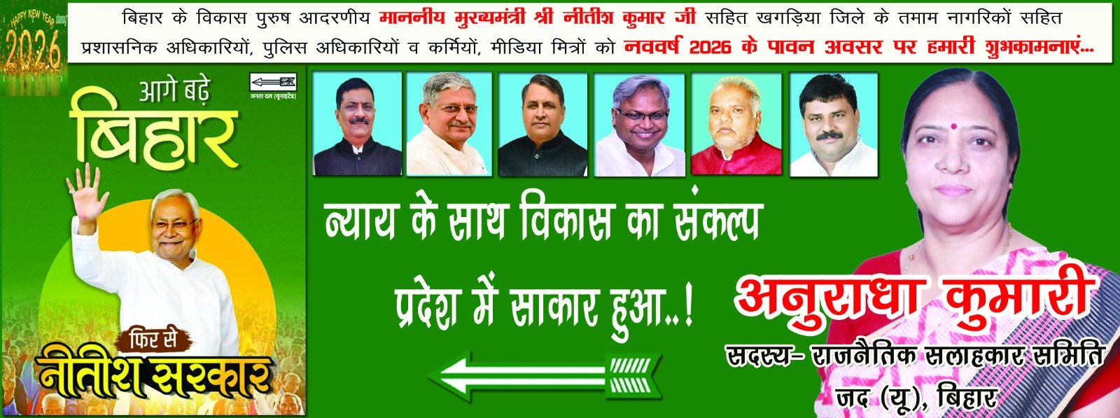 जदयू नेत्री अनुराधा कुमारी कुशवाहा ने कहा कि माननीय मुख्यमंत्री जी का स्नेह, मार्गदर्शन और आशीर्वाद करोड़ों जदयू कार्यकर्ताओं के लिए निरंतर प्रेरणा का स्रोत है। उनका सरल, सहज और संवेदनशील व्यवहार कार्यकर्ताओं को नई ऊर्जा और आत्मविश्वास प्रदान करता है।