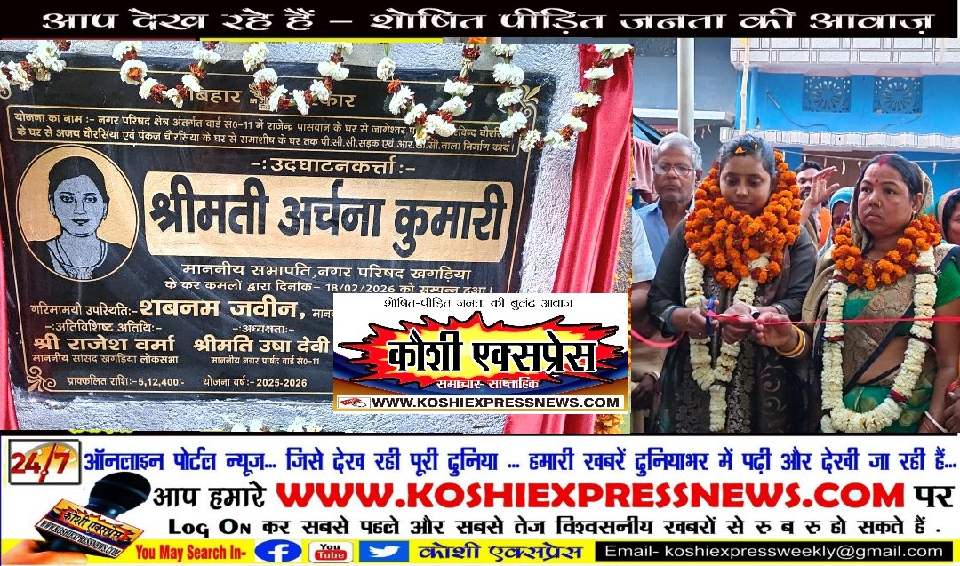 खगड़िया/ कौशी एक्सप्रेस/ नगर परिषद खगड़िया क्षेत्र में आधारभूत सुविधाओं को सुदृढ़ करने की दिशा में एक और महत्वपूर्ण उपलब्धि जुड़ गई है। नगर सभापति अर्चना कुमारी ने वार्ड संख्या–11 अंतर्गत कमलपुर (पोद्दार टोला के समीप) में ₹5,12,400 की लागत से आरसीसी नाला एवं पीसीसी सड़क निर्माण कार्य का विधिवत फीता काटकर उद्घाटन किया। उद्घाटन समारोह स्थानीय नागरिकों की उपस्थिति और उत्साह के बीच संपन्न हुआ। यह योजना लंबे समय से क्षेत्रवासियों की मांग रही है। कमलपुर के इस हिस्से में जलनिकासी की समुचित व्यवस्था नहीं होने के कारण बरसात के मौसम में जलजमाव की समस्या उत्पन्न हो जाती थी। घरों के सामने पानी भर जाने से गंदगी, मच्छरों का प्रकोप और संक्रमण की आशंका बनी रहती थी। साथ ही कच्ची एवं जर्जर सड़कें लोगों के लिए बड़ी परेशानी का कारण थीं। स्कूली बच्चों, बुजुर्गों और महिलाओं को विशेष कठिनाइयों का सामना करना पड़ता था। अब आरसीसी नाला निर्माण से जल निकासी की वैज्ञानिक एवं स्थायी व्यवस्था सुनिश्चित होगी, वहीं पीसीसी सड़क निर्माण से मजबूत और टिकाऊ मार्ग उपलब्ध होगा। स्थानीय लोगों का कहना है कि इस योजना से कमलपुर की दशा और दिशा दोनों में बदलाव आएगा। उद्घाटन के अवसर पर नगर सभापति अर्चना कुमारी ने कहा कि नगर परिषद खगड़िया में विकास का मतलब केवल कुछ क्षेत्रों तक सीमित नहीं है। हमारा लक्ष्य है कि हर वार्ड में बुनियादी सुविधाएं मजबूत हों। कमलपुर की यह योजना जनता की जरूरतों को ध्यान में रखकर शुरू की गई है। गुणवत्ता से कोई समझौता नहीं होगा और कार्य समयबद्ध तरीके से पूरा कराया जाएगा। उन्होंने आगे कहा कि नगर परिषद क्षेत्र में सड़क, नाला, शौचालय और अन्य आधारभूत संरचनाओं को मजबूत करने का अभियान निरंतर जारी है और आने वाले समय में अन्य वार्डों में भी इसी तरह की योजनाएं धरातल पर दिखाई देंगी कार्यक्रम वार्ड पार्षद ऊषा देवी (वार्ड–11) के प्रतिनिधि पिंटू कुमार की उपस्थिति में आयोजित हुआ। इस अवसर पर रवि सिंहा, दयानंद तांती, परमानंद तांती, उमेश पोद्दार, सुबोध पोद्दार, डॉ. अशोक शर्मा, प्रशांत सहित बड़ी संख्या में स्थानीय ग्रामीण मौजूद रहे। सभी ने नगर सभापति का स्वागत करते हुए कहा कि यह योजना क्षेत्र के लिए अत्यंत आवश्यक थी और इसके पूर्ण होने के बाद आवागमन तथा स्वच्छता की स्थिति में बड़ा सुधार होगा। नगर परिषद खगड़िया में हाल के समय में विभिन्न वार्डों में सड़क एवं नाला निर्माण कार्यों को प्राथमिकता दी जा रही है। नियमित निरीक्षण और निगरानी के माध्यम से यह सुनिश्चित किया जा रहा है कि सभी योजनाएं गुणवत्ता मानकों के अनुरूप पूरी हों। कुल मिलाकर, वार्ड 11 के कमलपुर में ₹5.12 लाख की लागत से आरसीसी नाला एवं पीसीसी सड़क निर्मा