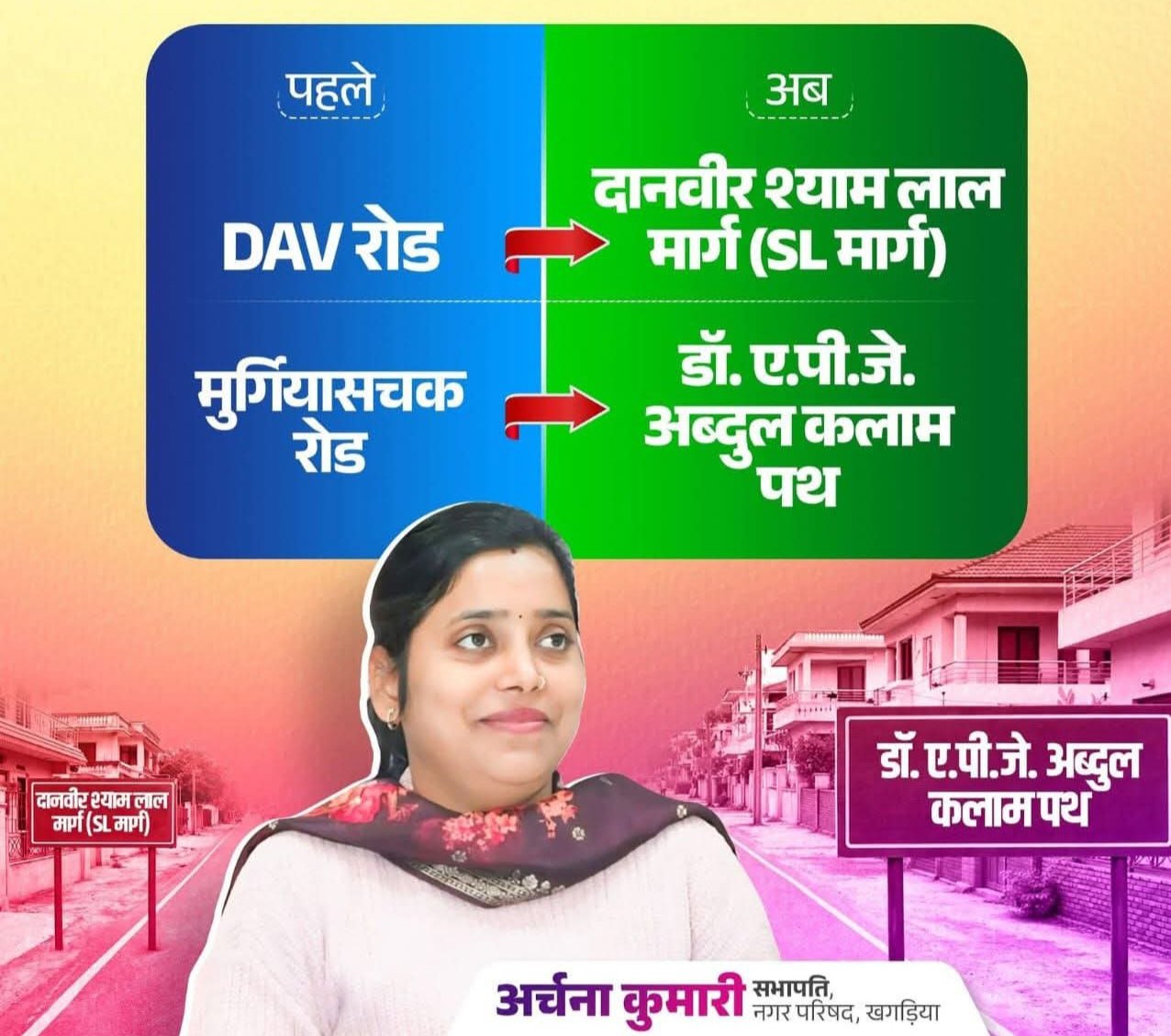 खगड़िया में विकास की रफ्तार तेज…नगर सभापति अर्चना कुमारी और ज्योतिष मिश्रा ने गिनाईं उपलब्धियां…सड़क, लाइट, पानी से लेकर सुरक्षा तक… नगर परिषद के विकास कार्यों का लंबा सिलसिला