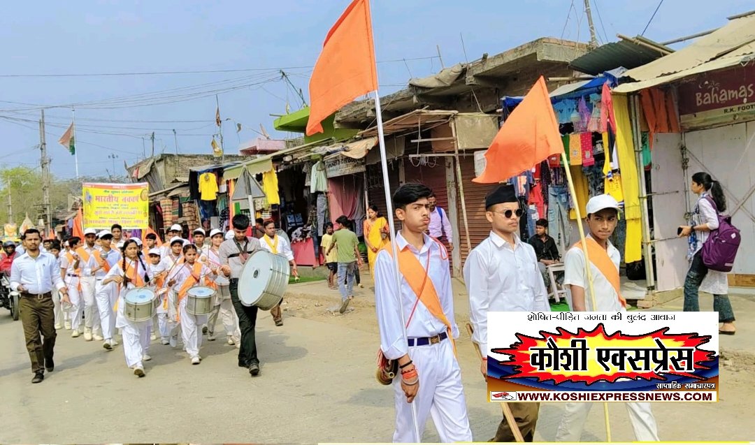 खगड़िया/ कौशी एक्सप्रेस/ 19 मार्च 2026 (गुरुवार)। चैत्र शुक्ल प्रतिपदा के पावन अवसर पर सरस्वती शिशु/विद्या मंदिर, खगड़िया के भैया-बहनों एवं आचार्य/दीदीजी द्वारा भव्य पथ संचलन निकाला गया। घोष दल के साथ निकले इस संचलन ने पूरे शहर का वातावरण “हिंदू नव वर्ष मंगलमय हो” के जयकारों से गुंजायमान कर दिया।