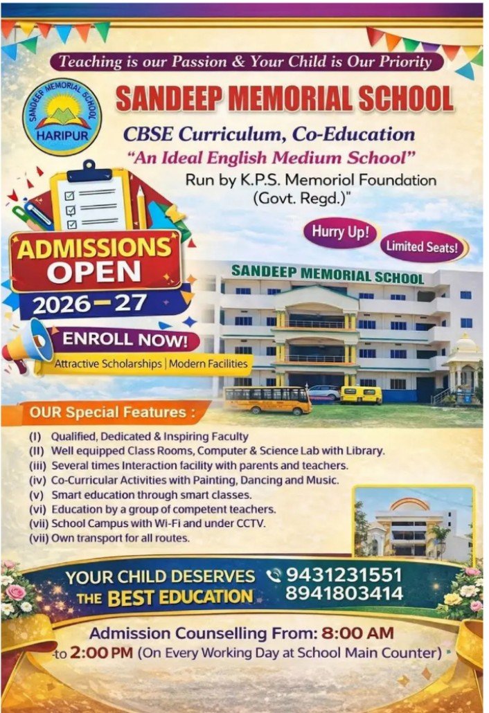 मालूम हो कि डॉ. सौरभ सुमन के कुशल नेतृत्व में संदीप मेमोरियल School अलौली क्षेत्र में गुणवत्तापूर्ण शिक्षा का नया आयाम स्थापित कर रहा है। विद्यालय में आधुनिक शिक्षण पद्धति, अनुशासित वातावरण, स्मार्ट क्लास, कंप्यूटर लैब, साइंस लैब, समृद्ध पुस्तकालय एवं विद्यार्थियों के सर्वांगीण विकास पर विशेष ध्यान दिया जाता है। साथ ही विद्यालय परिसर Wi-Fi एवं CCTV सुविधा से सुसज्जित है तथा छात्रों के लिए सभी रूटों पर परिवहन सुविधा भी उपलब्ध है।