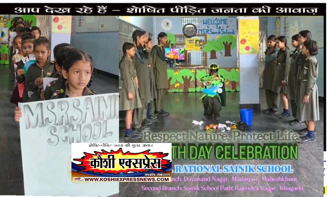 खगड़िया / कौशी एक्सप्रेस/ पृथ्वी दिवस के अवसर पर स्थानीय राजेंद्र नगर स्थित प्रतिष्ठित शिक्षण संस्थान MSR सैनिक स्कूल में पर्यावरण संरक्षण के प्रति जागरूकता फैलाने हेतु विशेष कार्यक्रम का आयोजन किया गया। कार्यक्रम का उद्देश्य बच्चों में प्रकृति के प्रति प्रेम, जिम्मेदारी और स्वच्छ वातावरण के प्रति चेतना विकसित करना था। विद्यालय के युवा डायरेक्टर सुमन कुमार ने बताया कि हर वर्ष 22 अप्रैल को मनाया जाने वाला पृथ्वी दिवस हमें पर्यावरण बचाने का संदेश देता है।