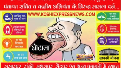 खगड़िया: सात निश्चय योजना घोटाला पर मुखिया, पंचायत सचिव व कनीय अभियंता के विरुद्ध मामला दर्ज… संसारपुर, रांको, मथुरापुर ,सैदपुर एवं अन्य पंचायतों में व्याप्त भ्रष्टाचार को उजागर करने का साहस मो. नैयर ने किया