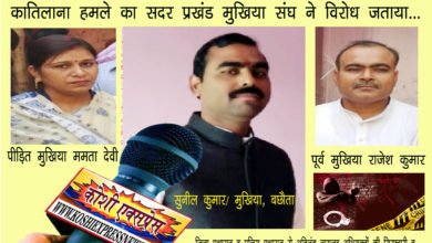 खगड़ियाः जिला मुखिया संघ जिलाध्यक्ष ममता देवी के आवास पर हुए कातिलाना हमले का सदर प्रखंड मुखिया संघ ने कड़ी निंदा कर विरोध जताया… जिला प्रशासन व पुलिस प्रशासन से अविलंब नामजद अभियुक्तों की गिरफ्तारी व पीड़ित मुखिया परिवार को सुरक्षा मुहैया कराने की अपील- सुनील कुमार/ मुखिया, बछौता..