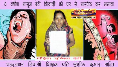 खगड़िया: दूसरी शादी करने के नीयत से पहली पत्नी सुष्मिता व 8 वर्षीया मासूम बेटी शिवानी को घर से मारपीट कर भगाया… चन्दनगर निवासी शिक्षक पति सुशील कुमार सहित परिजनों के खिलाफ F.I.R. दर्ज… पीड़िता ने मुख्यमंत्री, डीजीपी, डीआईजी, महिला आयोग एवं एसपी खगड़िया ने न्याय की गुहार लगाई..