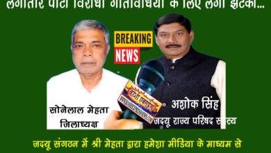 KHAGARIA : JDU एमएलसी सह जिलाध्यक्ष सोनेलाल मेहता को लगातार पार्टी विरोधी गतिविधियों के लिए लगा झटका… जदयू संगठन में…