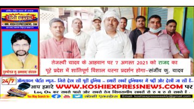 तेजस्वी यादव के आहवान पर 7 अगस्त 2021 को राजद का पूरे प्रदेश में शांतिपूर्ण विशाल धरना प्रदर्शन होगा-संजीव कु.…