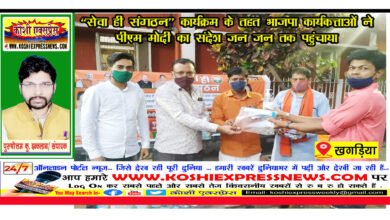 खगड़ियाः ‘‘सेवा ही संगठन’’ कार्यक्रम के तहत भाजपा कार्यकत्ताओं ने पीएम मोदी का संदेश जन जन तक पहुंचाया… सेवाभाव…