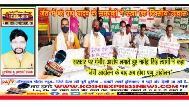 खगड़िया: जेल में बंद पप्पू यादव के समर्थकों ने रखा एक दिवसीय उपवास… सरकार पर गंभीर आरोप लगाते हुए नागेंद्र सिंह त्यागी ने कहा ‘‘जेपी आंदोलन के बाद अब होगा पप्पू आंदोलन’