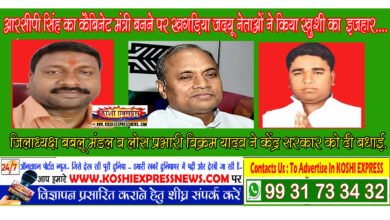 आरसीपी सिंह का केंद्र सरकार में कैबिनेट मंत्री बनने पर ‘‘खगड़िया जदयू नेताओं ने किया खुशी का इजहार’’….जिलाध्यक्ष बबलू मंडल व लोस प्रभारी विक्रम यादव ने इसके लिए केंद्र सरकार को दी बधाई…