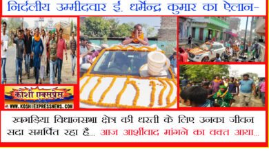 खगड़िया : 149 विस: निर्दलीय उम्मीदवार ईं. धर्मेन्द्र कुमार का ऐलान- खगड़िया विधानसभा क्षेत्र की धरती के लिए उनका जीवन…