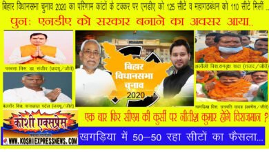खगड़िया : बिहार विधानसभा चुनाव 2020 का परिणाम कांटों के टक्कर पर एनडीए को 125 सीटें व महागठबंधन को 110…