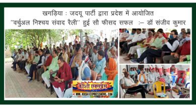 खगड़िया: जदयू पार्टी द्वारा प्रदेश में आयोजित ‘‘वर्चुअल निश्चय संवाद रैली’’ हुई सौ फीसद सफल :- डॉ संजीव कुमार/प्रदेश उपाध्यक्ष,…