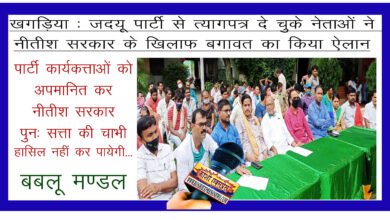 खगड़िया: जदयू पार्टी से त्यागपत्र दे चुके नेताओं ने नीतीश सरकार के खिलाफ बगावत का किया ऐलान… पार्टी कार्यकत्ताओं को अपमानित…