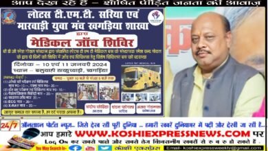 खगड़िया: 10 व 11 जनवरी को लगेगा मेडिकल जांच शिविर… सिर्फ 20 रुपए में आंखों का परीक्षण व चश्मा, दांत…