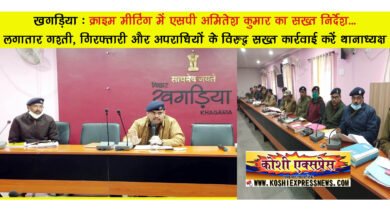खगड़िया: क्राइम मीटिंग में एसपी अमितेश कुमार का सख्त निर्देश…लगातार गश्ती, गिरफ्तारी और अपराधियों के विरुद्ध सख्त कार्रवाई करें थानाध्यक्षखगड़िया/कोशी…