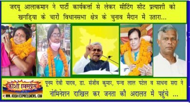 खगड़िया: JDU आलाकमान ने पार्टी कार्यकर्ता से लेकर सीटिंग सीट प्रत्याशी को खगड़िया के चारों विधानसभा क्षेत्रों में चुनाव मैदान…