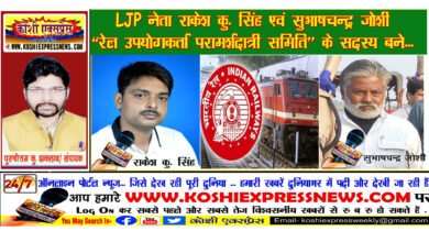 खगड़िया: लोजपा नेता राकेश कु. सिंह एवं सुभाषचन्द्र जोशी ‘‘रेल उपयोगकर्ता परामर्शदात्री समिति’’ के सदस्य बने... जिले में खुशी की…
