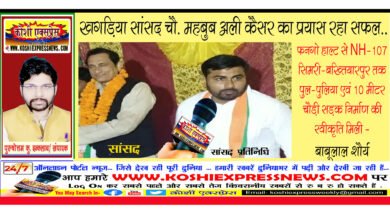 खगड़िया सांसद चौ. महबुब अली कैसर का प्रयास रहा सफल .. फनगो हॉल्ट से NH-107 सिमरी-बख्तियारपुर तक पुल-पुलिया एवं 10 मीटर चौड़ी सड़क निर्माण की स्वीकृति मिली – बाबूलाल शौर्य /सांसद प्रतिनिधि