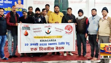 खगड़ियाः Humanity Blood Donor group के सौजन्य से रक्तदान शिविर का आयोजन नशा मुक्ति केंद्र सदर अस्पताल खगड़िया में 22 जनवरी 2020 को…रक्तदान शिविर में अपनी स्वेच्छा से अपना खून दान कर मानवता की सेवा में शामिल होने का साहस करें- नवीन गोयनका/उपसचिव