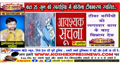 जरुरी सूचना: कल 25 जून को खगड़िया में कोरोना टीकाकरण स्थगित… टीका कर्मियों को लगातार काम के बाद विश्राम…