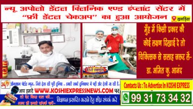 न्यू अपोलो डेंटल क्लिनिक एण्ड इंप्लांट सेंटर में हुआ ‘‘फ्री डेंटल चेकअप’’ का आयोजन…‘ मुँह में किसी प्रकार कीे कोई लक्षण दिखाई दे तो चिकित्सक से सलाह जरूर लें- डा. अमित कु. आनंद